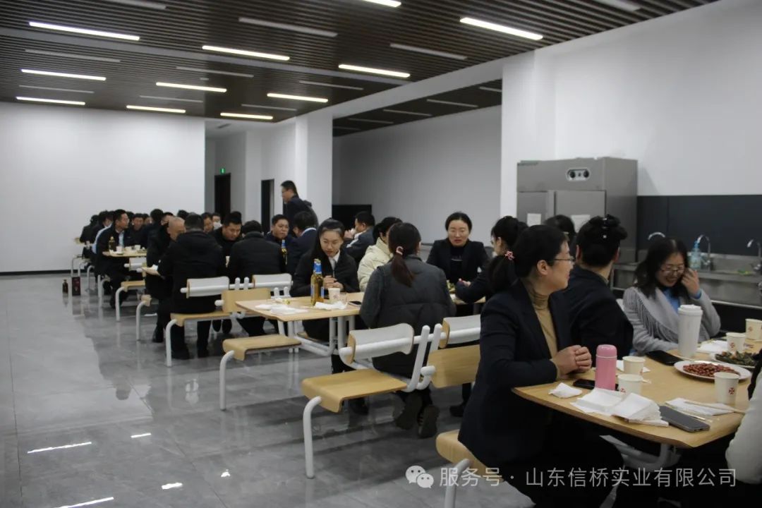 會議結束后,所有的信橋員工在公司餐廳聚餐進行年會慶祝,現(xiàn)場氣氛熱烈歡快。